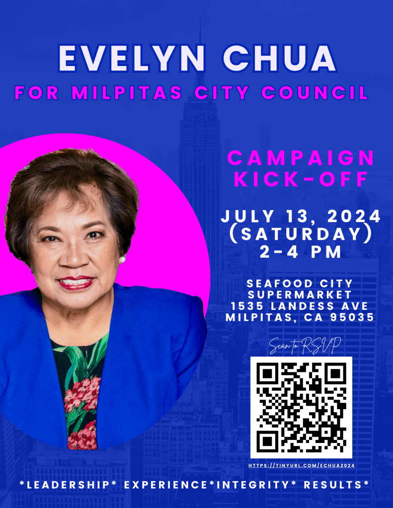 We are excited to invite you to the official kickoff event for Evelyn’s campaign for Milpitas City Council! Join us for an afternoon of inspiration, community, and commitment as we embark on this important journey together.